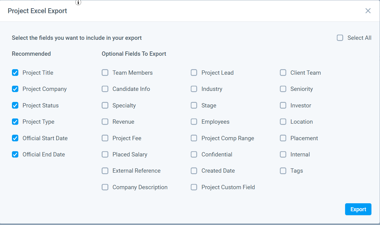 Now imagine you are asked for a list of all placements you have completed for companies with 500 or less employees with over $100M in revenue. If you had only entered the required project data, you might struggle to pull relevant data from your past projects. However, if you put this data in at the start, this request would be simple to fulfill.
